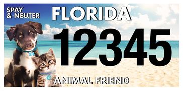 Every Florida Animal Friend license plate purchased or renewed, funds annual grants given to clinics and organizations that offer low-cost, or no-cost spay and neuter services.  Thanks to Floridians like you who have purchased our specialty plate we have provided over $8.8 million in grants to help stop the crisis of dog and cat overpopulation.